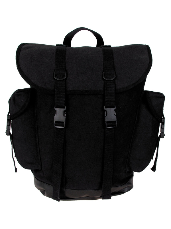 BW horský batoh, v černé barvě, nový model. Nový styl tradičního horského batohu má plastový uzávěr, ramenní vycpávky, vyztuženou základnu vyrobenou z nepromokavé PVC, 2 boční kapsy, 1 vnitřní kapsu, držadlo, obsah asi 30 litrů, materiál: 100% bavlna.