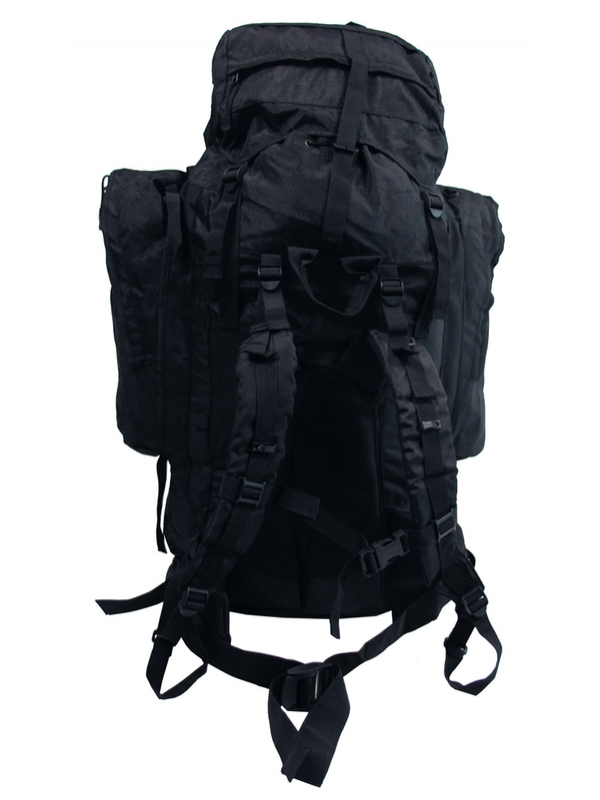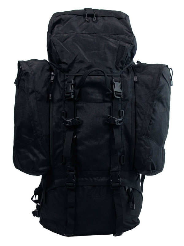 velmi velký batoh o objemu cca 110L, 2 odnímatelné boční vaky, kapsa na špinavé prádlo ve spodní části, polstrovaná záda a ramenní popruhy, kovová kostra uvnitř, 100% denier nylon