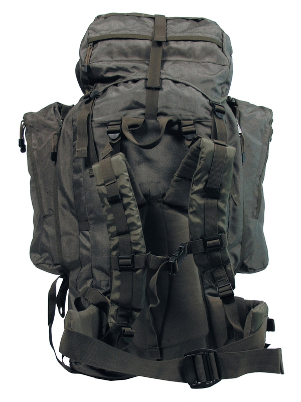 velmi velký batoh o objemu cca 110L, 2 odnímatelné boční vaky, kapsa na špinavé prádlo ve spodní části, polstrovaná záda a ramenní popruhy, kovová kostra uvnitř, 100% denier nylon | ||