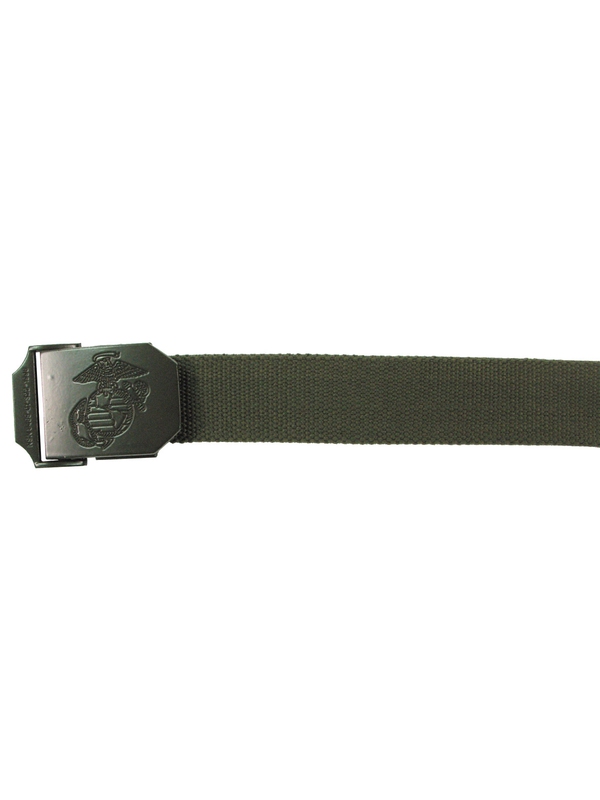USMC olivový pásek o šíři 35 mm má nastavitelnou délku až 130 cm a kovovou uzavírací přezku s aplikací. Materiál: 100% polyester.