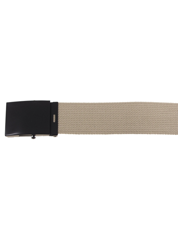 Textilní pásek v khaki barvě 4,5 cm široké, s kovovou přezkou má nastavitelnou délku až 130 cm, materiál: 80% bavlna, 20% polyester.