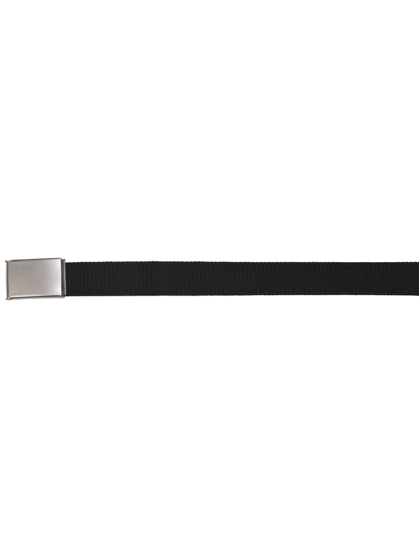 Černý textilní opasek, šíře 3,2 cm s matnou stříbrnou kovovou skládací přezkou, nastavitelný do 130 cm, materiál: 100% polyester. | ||