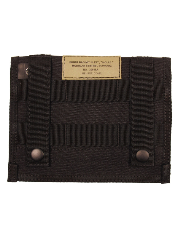 Náprsní kapsa nebo taky peněženka "dokladovka" na suchý zip, modulární systém MOLLE, v černé barvě, material: 100 % nylon, má dvě vnitřní kapsy, rozměr: cca délka: 18, Výška: 14 cm. | ||