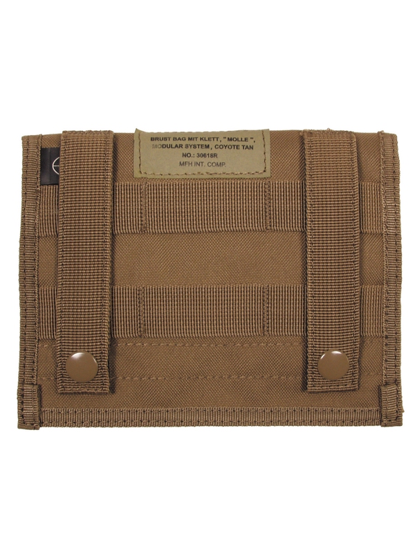Náprsní kapsa nebo taky peněženka "dokladovka" na suchý zip, modulární systém MOLLE, design coyote tan, material: 100 % nylon, má dvě vnitřní kapsy, rozměr: cca délka: 18, Výška: 14 cm. | ||