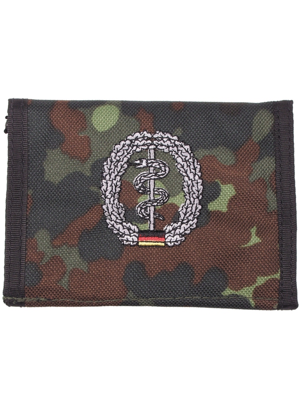 Textilní peněženka s kapsami na suchý zip, v designu flecktarn, se znakem, materiál: 100 % nylon. | ||