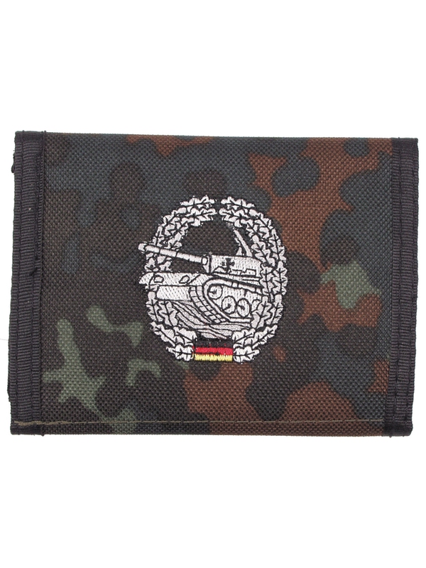 Textilní peněženka s kapsami na suchý zip, v designu flecktarn, se znakem, materiál: 100 % nylon. | ||