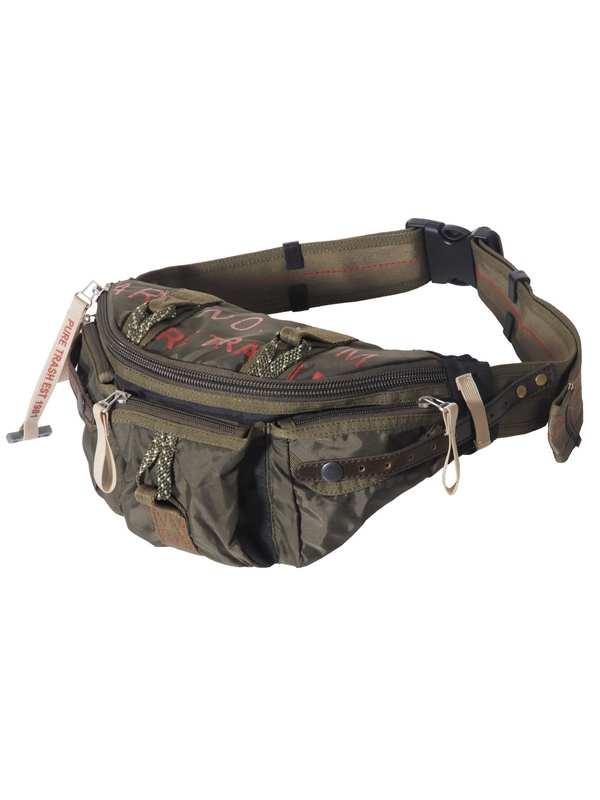 Ledvinka, nylon, "PT", olivová má nastavitelný bederní pás s přezkou, hlavní kapsy jsou na zip, 3 kapsičky na suchý zip a zadní kapsa na zip, vnitřní kapsa na zip a uvnitř kapsa na mobilní telefon Velikost: cca délka 31 cm, šířka 13 cm, výška 20 cm, materiál: 100% Nylon.