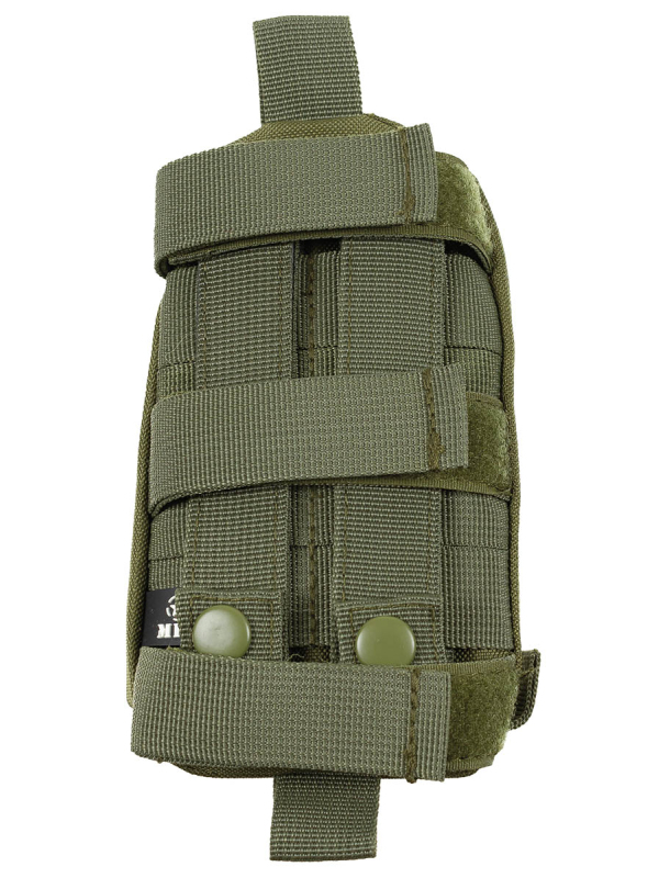 Pouzdro na pistoli "MOLLE" v olivové barvě s nastavitelnou velikostí. Ta se nastavuje pomocí suchého zipu. Materiál: 100% polyester. | ||