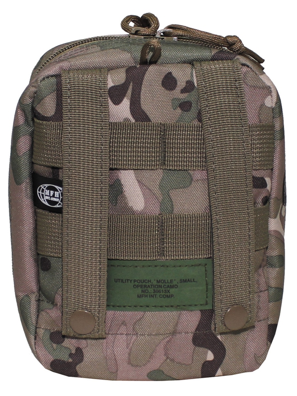Univerzalní pouzdro MOLLE na zip v designu operační camo, velikost: šířka: 13 cm, hloubka: 7 cm, výška: 19 cm, materiál: 100% polyester. | ||
