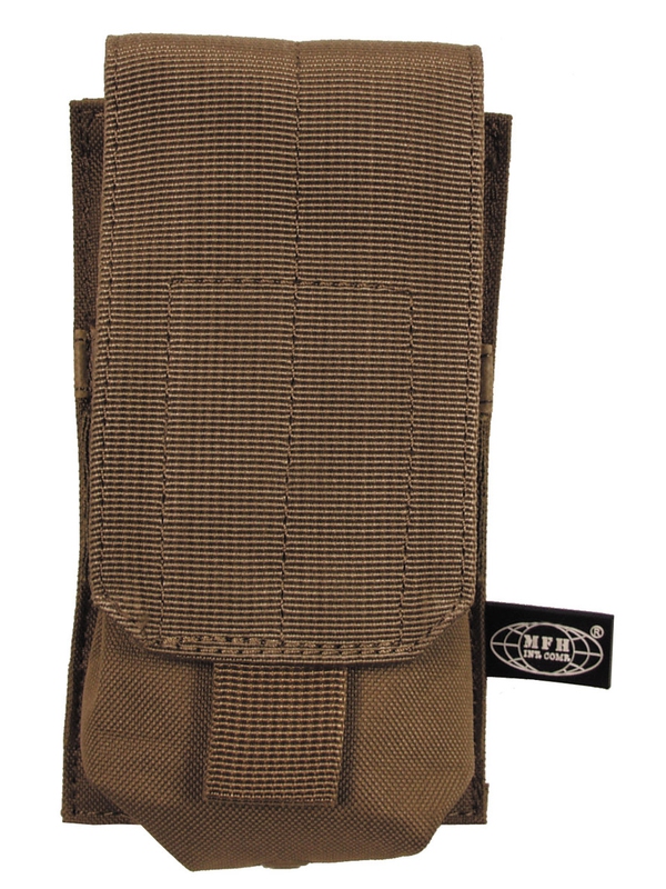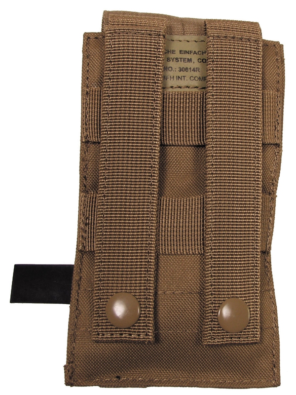 Pouzdro na zásobník ”MOLLE”, Modular System, design coyote tan. MOLLE Mag pouzdro se zapínáním na suchý zip je kompatibilní pouzdro na zásobníky M4/M16 a další. Materiál: 100% nylon. Rozměry: šířka: 8.5 cm, hloubka: 5 cm, výška: 16 cm. | ||