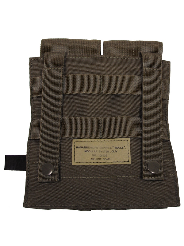 Pouzdro na zásobník ”MOLLE”, Modular System, v barvě olivové. MOLLE Mag pouzdro se zapínáním na suchý zip je kompatibilní pouzdro na zásobníky M4/M16 a další. Materiál: 100% nylon. Rozměry: šířka: 8.5 cm, hloubka: 5 cm, výška: 16 cm. | ||