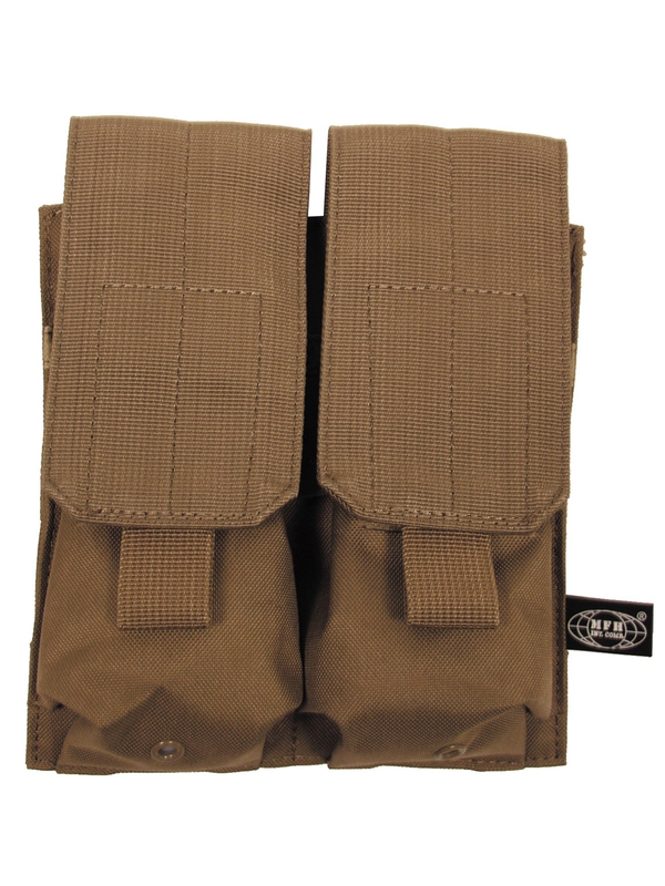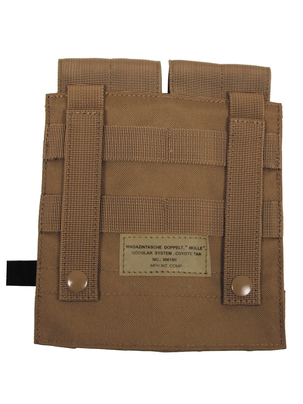 Pouzdro na zásobník ”MOLLE”, Modular System, dvojité, v designu coyote tan. Dvojité pouzdro na dva zásobníky na suchý zip. Velikost: šÍřka: 8,5 cm, hloubka: 5 cm, výška: 17 cm, materiál: 100% nylon. | ||