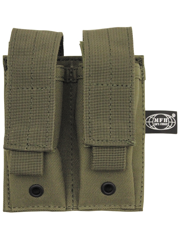 Malé dvojité pouzdro na zásobník, baterku, nebo nářadí MOLLE, modularní systém olivové, je ze 100% nylonu. Rozměr: šířka: 4 cm, hloubka: 2 cm, výška: 12 cm. | ||