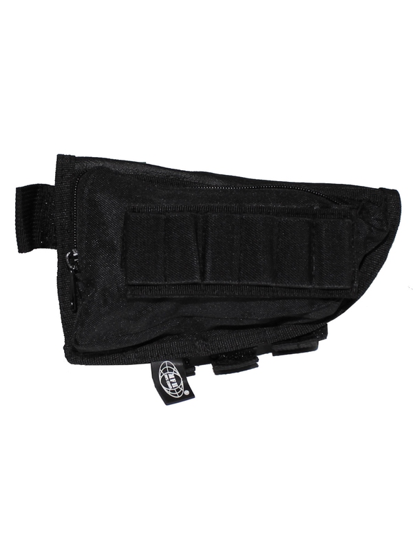 Univerzální obal na pistoli textilní - černý, s protiskluzovou vrstvou na zadní straně nohy, nastavení s třemi nastavitelnými popruhy, kapsa na zip a odnímatelný držák náplně munice se suchým zipem, odnímatelný držák kazety venku na suchý zip, materiál: 100% polyester.