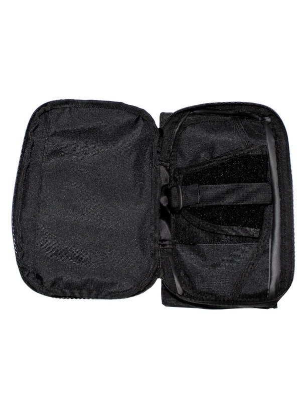 Praktická skládací taška na opasek Security s nastavitelným popruhem a klipovým uzávěrem, dvě další spojky přes tlačítko, s vnitřní kapsou na suchý zip na pistoli, vnitřní kapsa se dvěma držáky, jedna vnější kapsa na zip, dvě malé kapsy na zip na Giitel, materiál: 100% polyester.