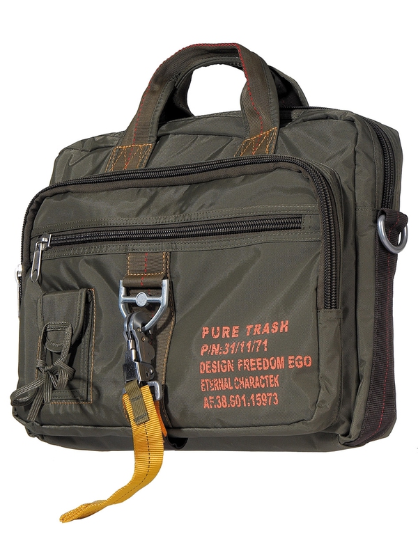 Praktická a pevná taška s  nastavitelným ramenním popruhem, s dvěma ušima. Taška má mnoho kapsiček různých velikostí - hlavní kapsa na zip, dvě přední a jedna zadní kapsa na zip,  vnitřní kapsa se zipem a  kapsička na mobilní telefon uvnitř tašky. Materiál: 100 % nylon, barva: olivově zelená, rozměry: 40 x 10 x 30 cm.