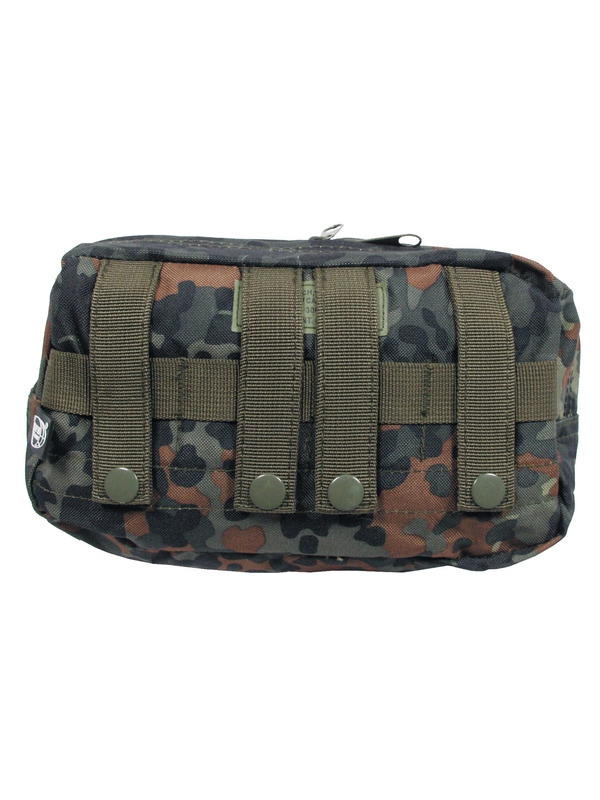 Taška ”MOLLE” na zip velká, Modular System, v designu flecktarn. Taška se zapínáním nahoře má rozměry délka cca: 24 cm, hloubka: 9 cm, výška: 13 cm, materiál: 100% polyester. | ||