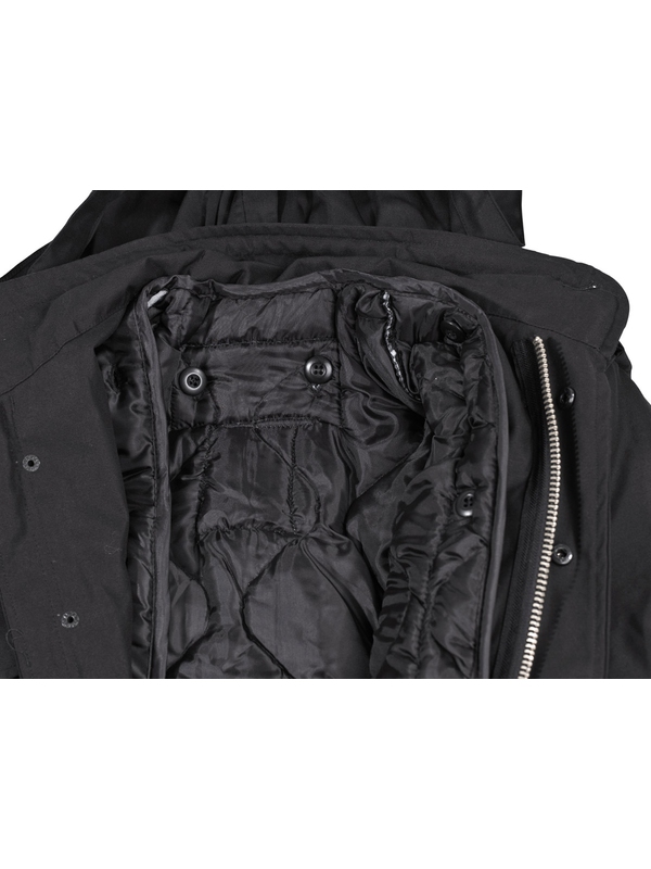 US polní bunda M65 s prošívanou podšívkou, černá. Top americká polní bunda s bavlněnou podšívkou a odnímatelnou vložkou má čtyři kapsy s klopou na suchý zip, kapuci v límci na zip, nastavitelné šňůrky v pase a na suchý zip nastavitelný šířku rukávu. Materiál: 65% polyester, 35% bavlna, podšívka: 100% bavlna, druhá podšívka 100% polyester.