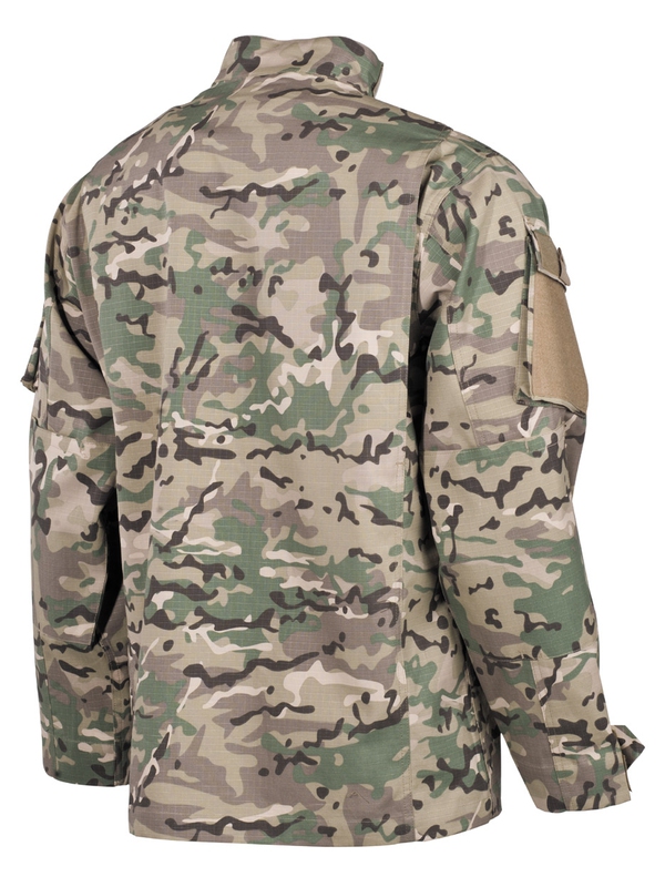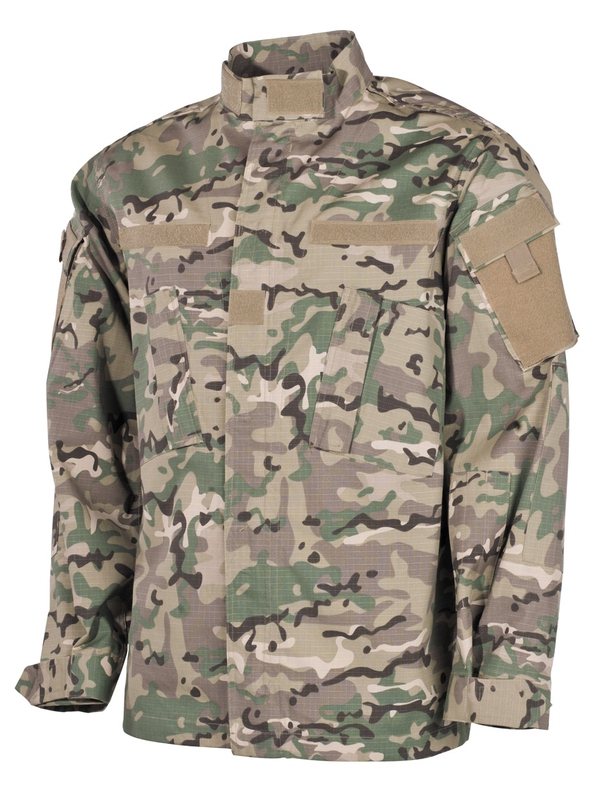 ACU ARMY COMBAT UNIFORM RIP STOP, je nový základní model americké armády, dvě šikmé náprsní kapsy s uzávěrem na suchý zip, loketní záplaty mohou být rozšířeny o polstrování, dvě ramenní kapsy s Velcro pro odznaky, límec se suchým zipem, vpředu na zip, materiál: 100% bavlna.