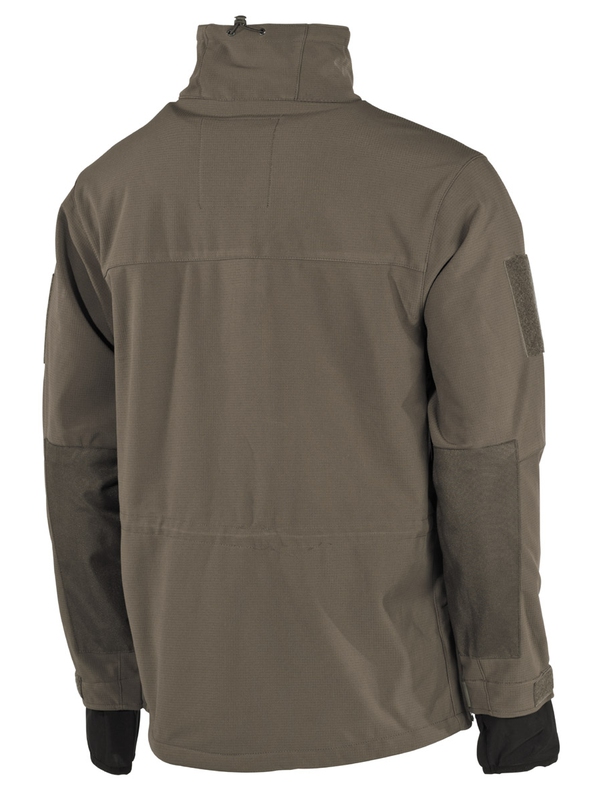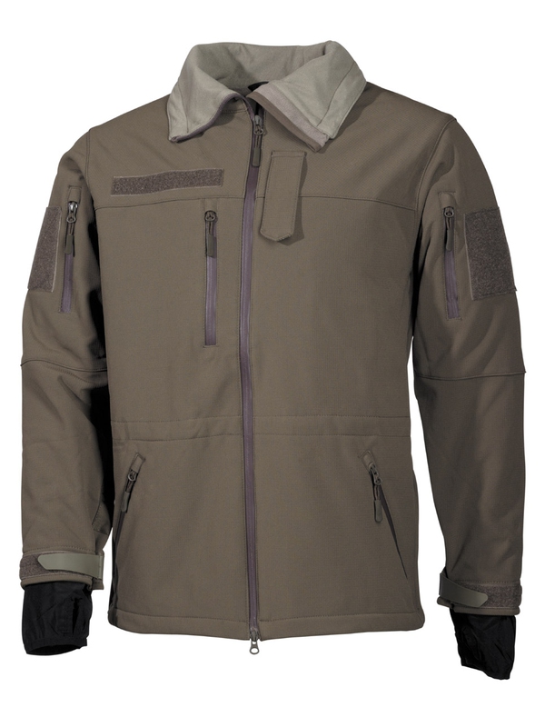 Olivová softshellová bunda z kategorie "high obrany" je vodě a větru odolná prodyšná bunda s dvěma kapsami na rukávech na zip s nastavitelnými manžetami na suchý zip, kapsa na prsou na zip, dvě velké přední kapsy na zip, v podpaží zip pro větrání a dvě boční kapsy na zip, jedna vnitřní kapsa s kapsou na mobilní telefon, štítek na hodnost a jméno, materiál: 94% polyester, 6% spandex, podšívka 100% polyester fleece.