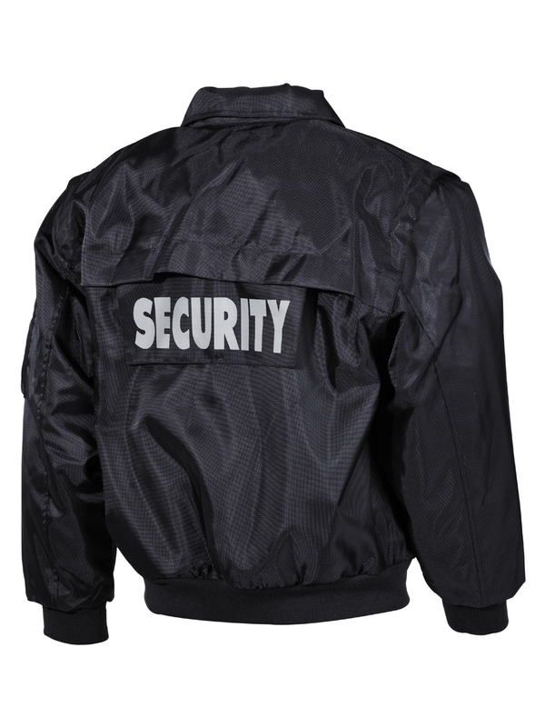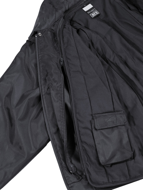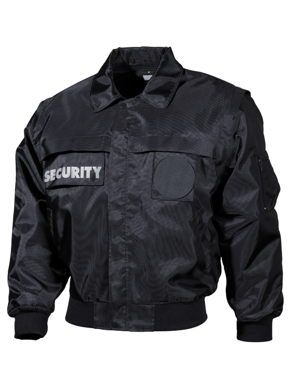 Modrá nepromokavá antistatická bunda SECURITY má odnímatelnou flísovou bundu s různými kapsami, odepínací rukávy na zip na vnějším a vnitřním plášti, vzadu s oky, šňůrkou v pase, s kapucí v límci, dvě kryté kapsy dole vpředu a šest kapsiček nahoře na suchý zip nebo na karabinu, 2 boční rozparky, 1 zásuvkova kapsa na zip na levé straně hrudi, široký suchý zip na propínání a seřiditelná objímky u rukávů. Materiál: 100% polyester.