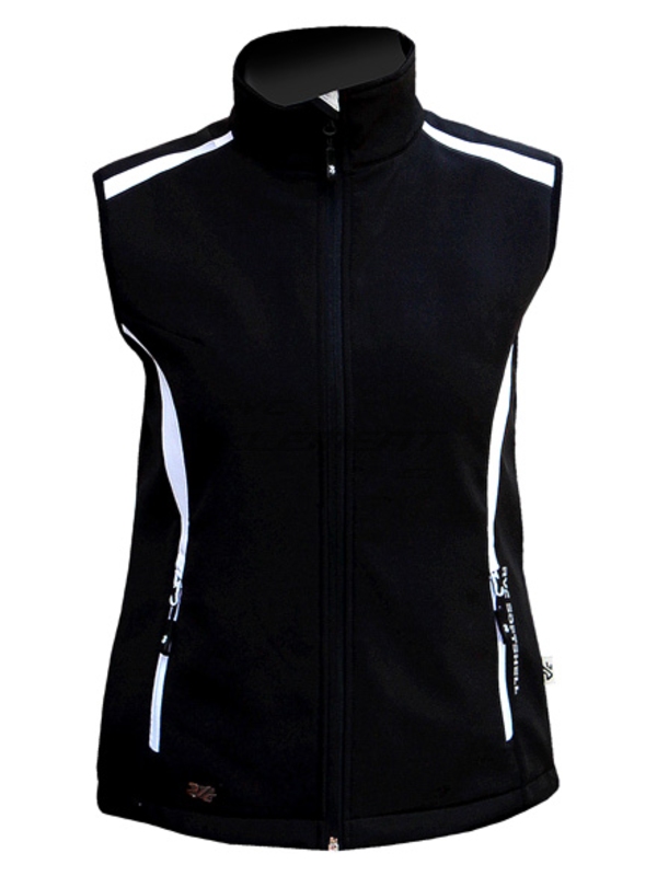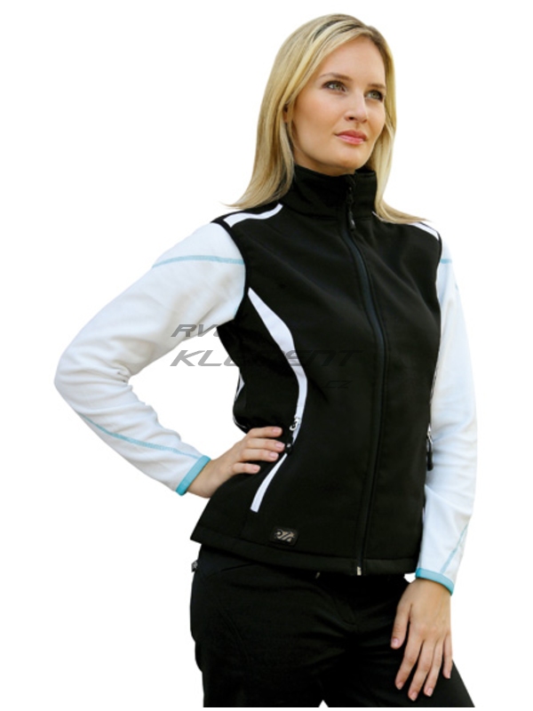 Kvalitní dámská větruodolná softshellová vesta, jednobarevná s kontrastními nápaditými detaily.