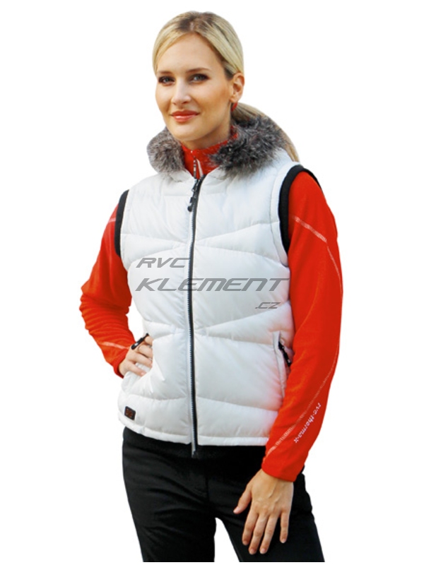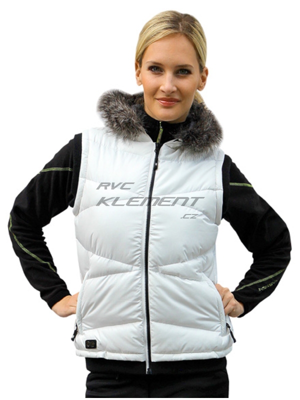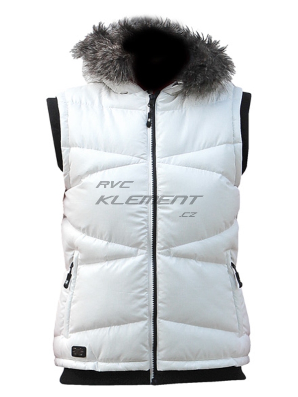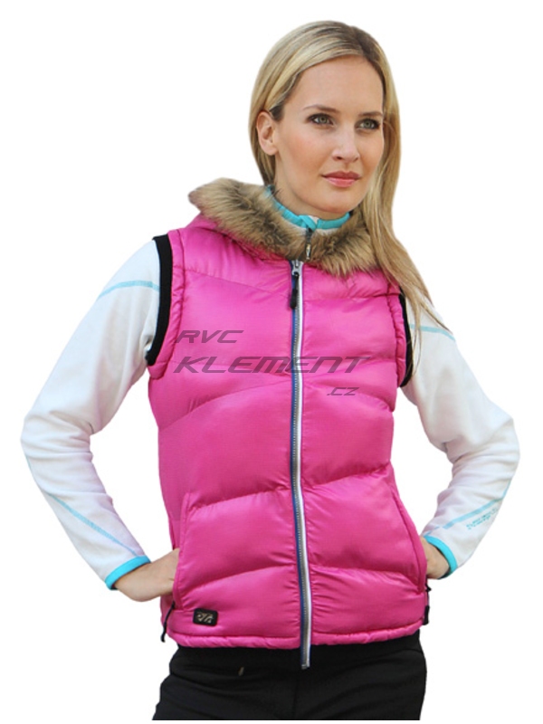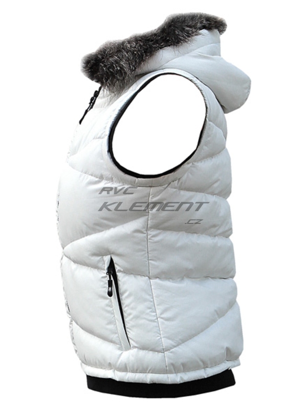 Slušivá dámská vesta s výplní, propínací s kapucí a kožešinkou | ||||||