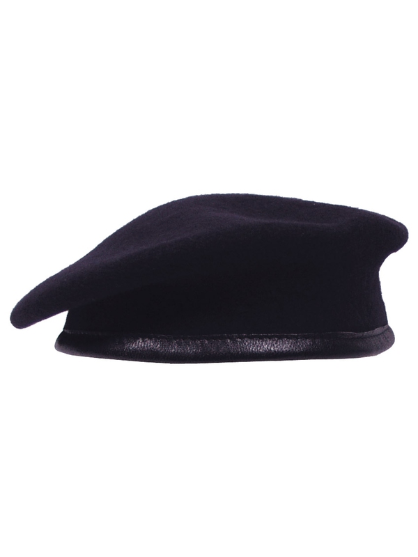 Komando baret, černý, svršek: 100% vlna, podšívka: 100% bavlna, lemováno kůží.