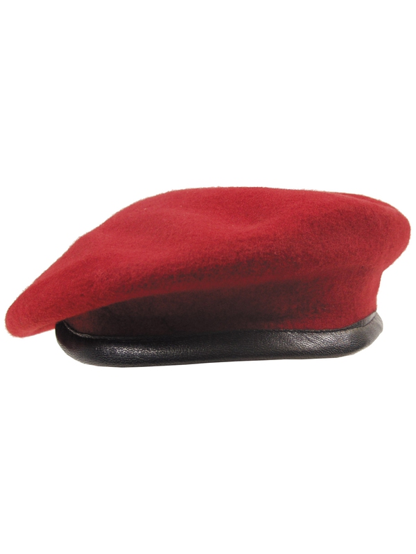 Komando baret, červený, svršek: 100% vlna, podšívka: 100% bavlna, lemováno kůží.