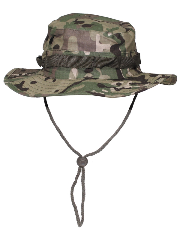 US GI Bush klobouk, s řemínkem pod bradou, Boonie, v designu bojové camo. Tropický klobouk americké armády s větracími otvory a nylonovým řemínkem, materiál: 100% bavlna. | ||