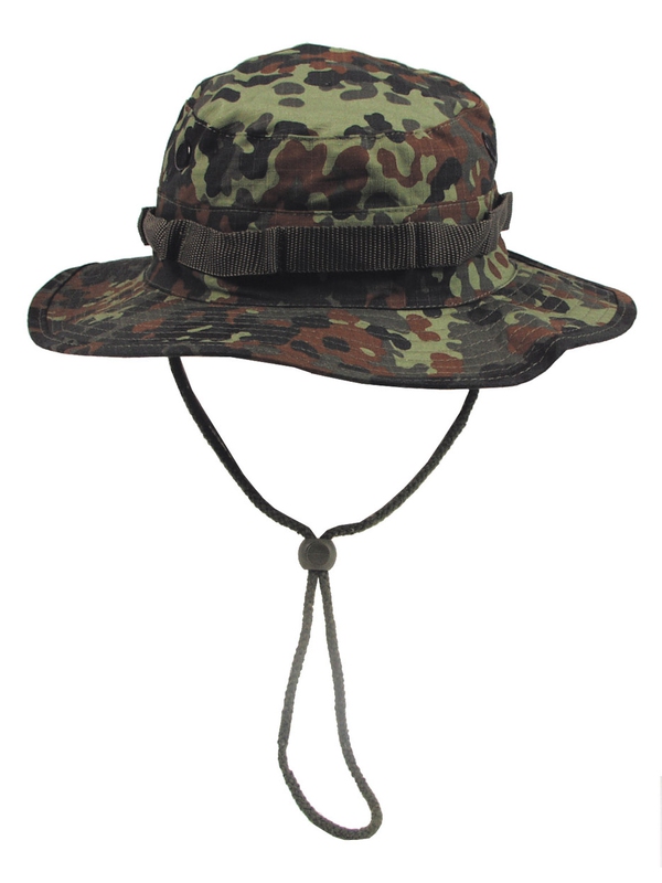 U. S. GI klobouk Boonie v designu flecktarn, RIP STOP. Tropický klobouk US Army se šňůrkou na utažení pod bradou s větracími otvory a nylonou stužkou, materiál: 100% bavlna. | ||