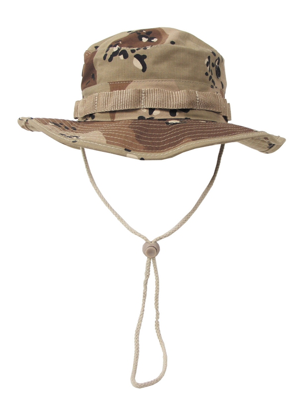 U. S. GI klobouk Boonie v designu 6 barev pouště, RIP STOP. Tropický klobouk US Army se šňůrkou na utažení pod bradou s větracími otvory a nylonou stužkou, materiál: 100% bavlna. | ||