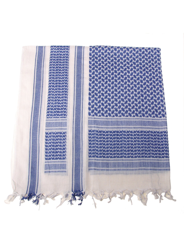 Modrobílý šátek s třásněmi. PLO šátek má rozměr 115 x 110 cm a je vyroben ze 100 % bavlny. | ||