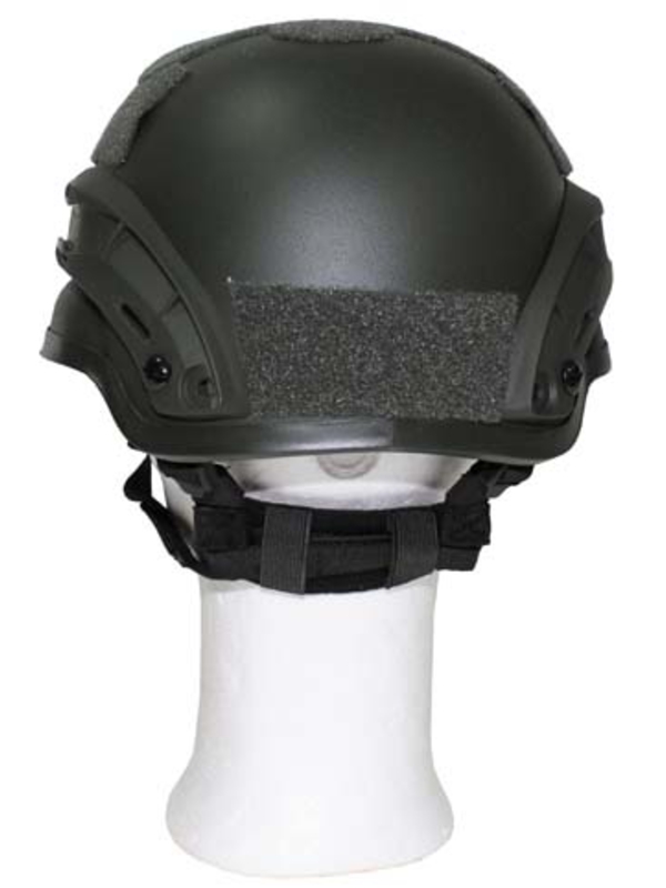Originál US helma "ME 2002" olivová, kolejnice, ABS plast. Velikost nastavitelná brada a šíje popruh, zapínání na suchý zip, nastavitelné vnitřní polstrování, dvě boční lišty k přijímání různých zařízení, držák na brýle pro noční vidění. Helma nemá žádné ochranné funkce, jen dekorační, materiál: ABS (odolný plast).