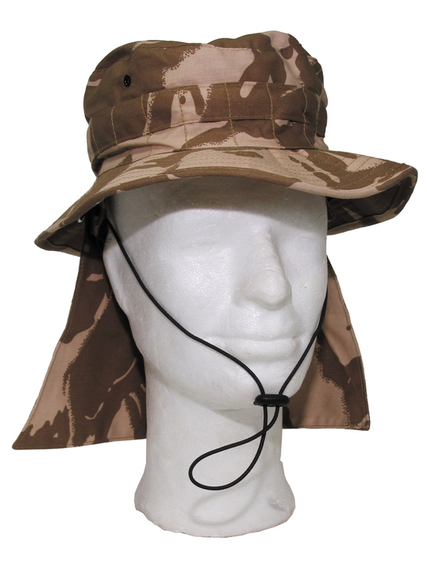 Britský bojový bush klobouk s chráničem krku, design pouštní maskování. | ||