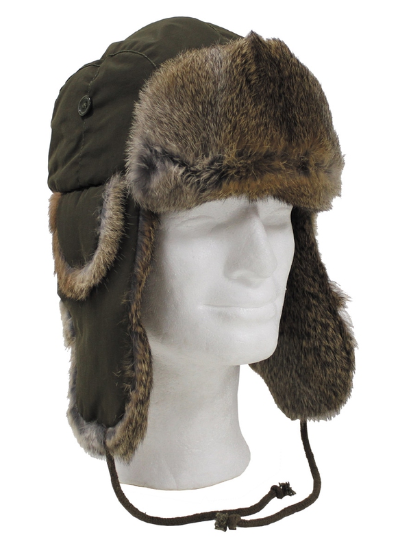Ušanka s hnědou králičí kožešinou - zelená