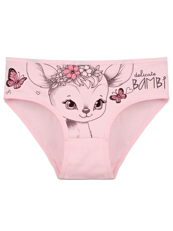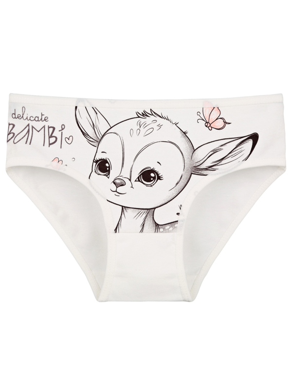 Dětské bavlněné kalhotky Bambi. Dětské bavlněné kalhotky Bambi. Dětské kalhotky klasického střihu jsou pohodlné a slušivé, zdobí je obrázek malé srnečky. Obzvláště oceníte materiálové složení - 95% bavlna a 5% elasten. Použitý materiál je příjemný a poddajný na dotek. | ||||||