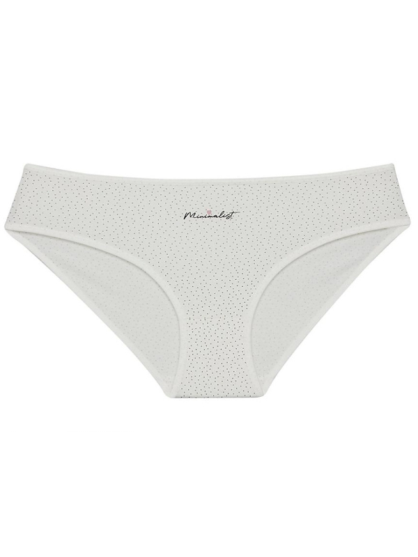 Dětské bavlněné kalhotky Sofia. Dětské kalhotky klasického střihu s potiskem a malým nápisem ’Minimalist’. Použitý materiál je příjemný a poddajný na dotek.