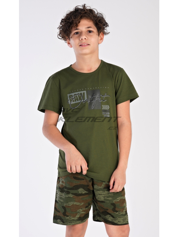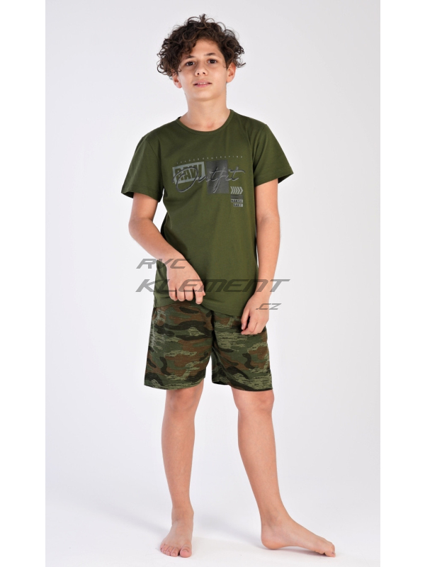 Dětské bavlněné pyžamo šortky Raw. Dětské bavlněné pyžamo šortky Raw. Dětské pyžamo se skládá z trička s krátkým rukávem a krátkých kalhot. Tričko s kulatým výstřihem zdobí nápisy v army stylu, tento motiv je použit i na šortkách. Šortky mají v pase gumu, jsou bez kapes. Pokyny pro údržbu: - 100% bavlna Míry naměřené na výrobku: