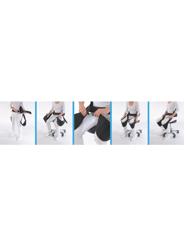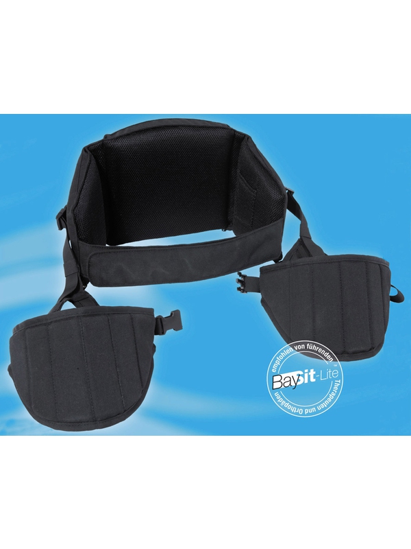 Pomůcka Bay Sit-Lite v černé barvě pro správné sezení, uvolňuje bederní páteř, rovná záda, zvyšuje terapeutická podpůrná opatření, zajišťuje pohodlí. 1000D Cordura.