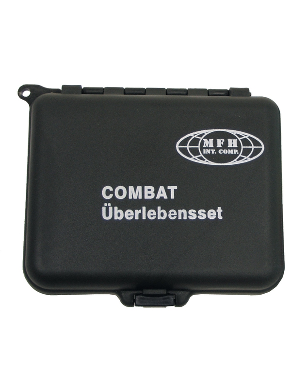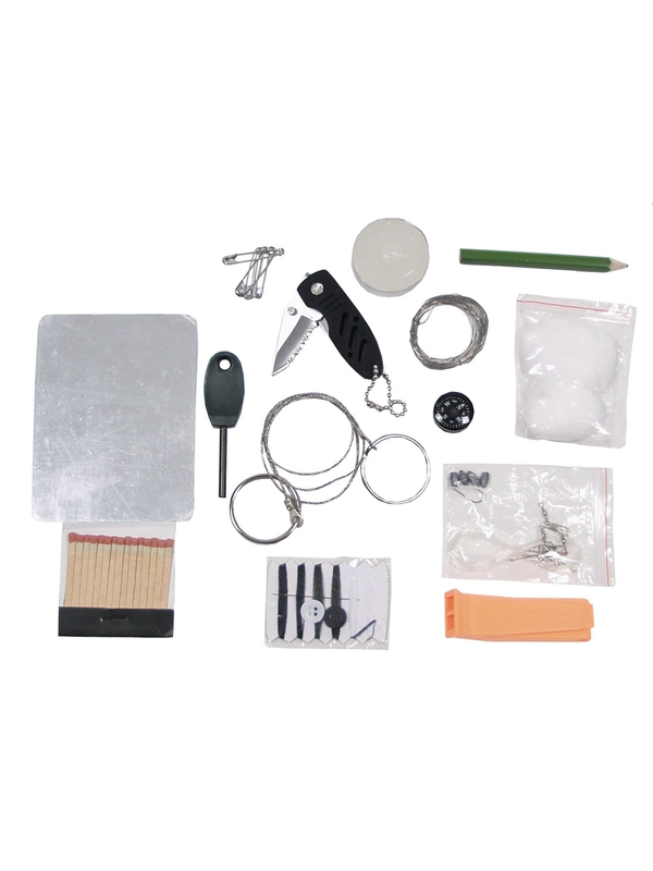 Vodotěsný box z plastické hmoty obsahuje velké množství potřebného vybavení pro případ nouze. Krabička poslední záchrany obsahuje: kompas, zrcátko, píšťalku, drátovou pilku, nůž, vlasec, drátek, zápalky, svíčku, tužku, spínací špendlíky, křesadlo, vatu. Rozměry: 12 x 10 x 3,5 cm