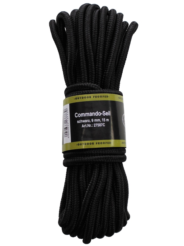 Pevná padáková šnůra o šířce 9 mm a délce 15 m v černé barvě. Nosnost cca 500 kg, hmotnost: 0,455 kg. Výrobce: MFH. | ||