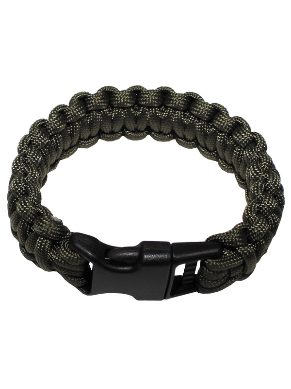 Profesionální náramek na paži z pletené paracord - "Paracord" v olivové barvě, šířka 2.3 cm s klipem na uzavření. Velikosti: S = 18 cm, L = 20 cm, L = 22 cm, délka otevřeno: S = 280 cm, L = 300 cm, L = 330 cm. Materiál: 100% polyester. | ||