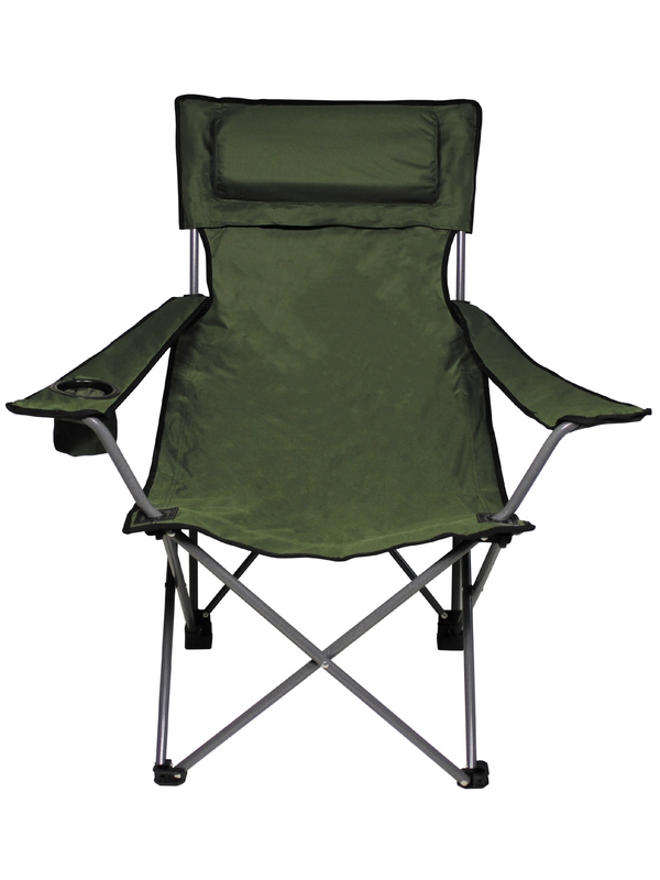 Skládací židle De Lux v olivové barvě. Křeslo má tapecírovaná záda, polštář a područky, na nichž je držák na láhev, nastavitelnou výšku hlavy polštáře a transportní tašku. Velikost balení: 18 x 14 x 100 cm, materiál: nylon, kov. | ||