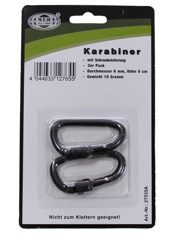 Karabina, šroubovací, 6mmx6cm, 2 ks, černá, není vhodná pro lezení a při záchranných operacích. | ||