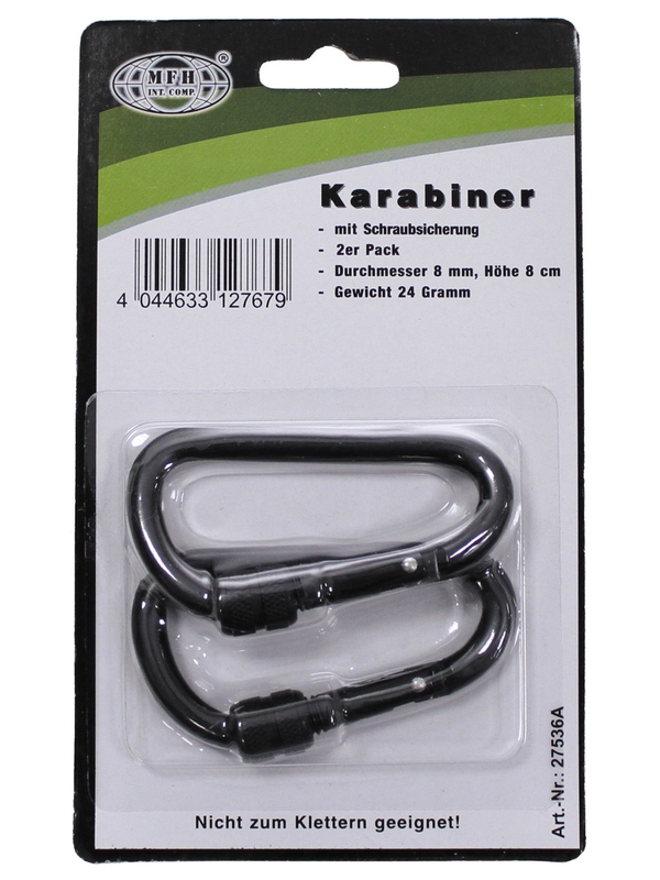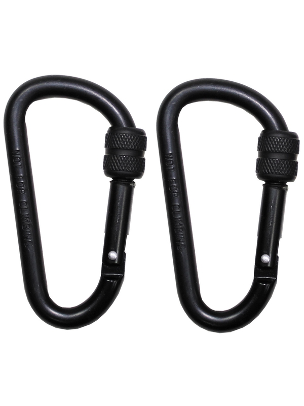 Karabina se šroubovacím uzávěrem, 8mmx8cm, 2 ks, černá, není vhodná pro lezení a při záchranných operacích. | ||