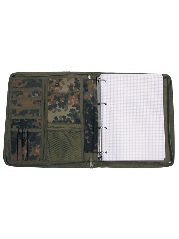 Maskovací psací podložka A4, obal na papíry, kapsa na mapu, má rejstřík listů, tři kapsy na tužky, kapsa na napájecí zdroj, vnitřní kapsa se zapínáním na suchý zip, sedm kapes uvnitř, na vnější straně štítek suchým zipem pro jmenovky. | ||