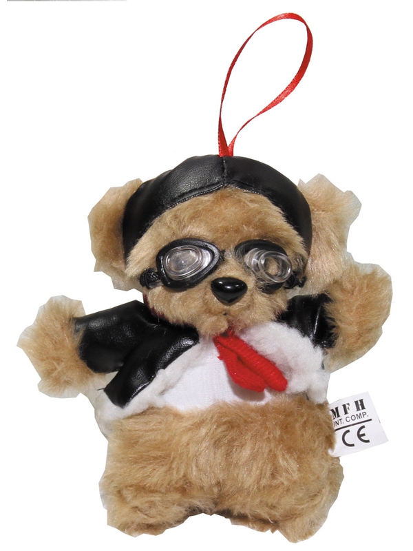 Plyšový medvěd v pilotním oblečku a s brýlemi, výška 14 cm. | ||