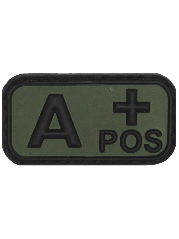 Štítek s označením krevní skupiny A pozitivní na suchý zip. Krevní 3D značka v barvě černá / olivová, rozměry: 5 x 2,5 cm, materiál: guma. | ||