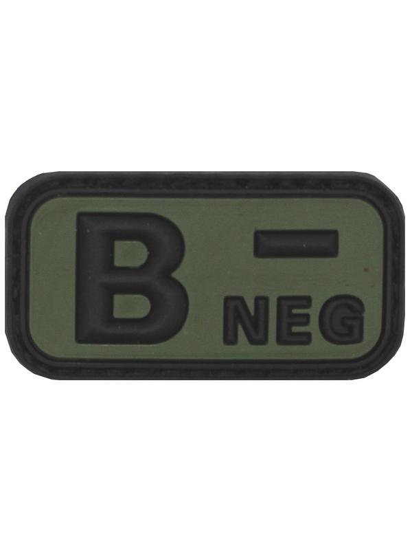 Štítek s označením krevní skupiny B negativní na suchý zip. Krevní 3D značka v barvě černá / olivová, rozměry: 5 x 2,5 cm, materiál: guma. | ||